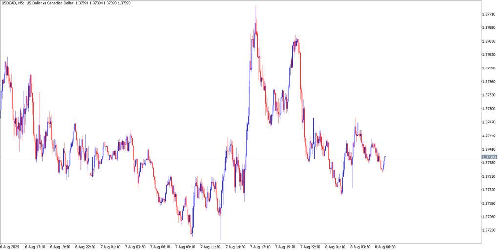 The technical picture for USD/CAD reveals a market in consolidation with a slight bullish tilt. On the 5-minute chart, the pair has been coiling into what looks like the beginning of a triangle pattern. This is evidenced by a series of lower highs juxtaposed against higher lows since yesterday – the range is tightening around 1.3740–1.3760. Such price action often precedes a sharper move once a breakout occurs. As of now, short-term moving averages are modestly upward-sloping, indicating buyers have the upper hand in the very near term. The pair found a solid floor around 1.3735 earlier in the day, rebounding each time it dipped to that area. This pinpoint support aligns with the triangle’s lower bound and has been highlighted as an important level to watch. If USD/CAD were to decisively break below 1.3735, it could signal a bearish fake-out from the triangle, with the next support zone around 1.3655 (a level identified as critical; a fall under 1.3655 would cancel the bullish scenario on the charts). On the flip side, immediate resistance is in the 1.3780–1.3800 region – just above the current market, where the triangle’s upper trendline lies. Beyond that, technical resistance from prior highs kicks in around 1.3845–1.386, which also corresponds to the 50-day MA on a higher timeframe and was cited as a target if momentum resumes. A break and hourly close above ~1.3855 would likely confirm an upside breakout, suggesting the pair could then extend toward 1.3895 (the forecasted bullish target from the triangle pattern). Notably, the chart shows some small bullish candlestick formations – for instance, a morning-star-like trio and a few hammer candles near support – reflecting that dips are being bought. Volatility on USD/CAD has been relatively muted compared to GBP or JPY pairs, but that could change if oil prices swing or if tomorrow’s Canadian employment report surprises. For now, the pair remains range-bound between roughly 1.3730 and 1.3780, waiting for a catalyst to tip the scales.