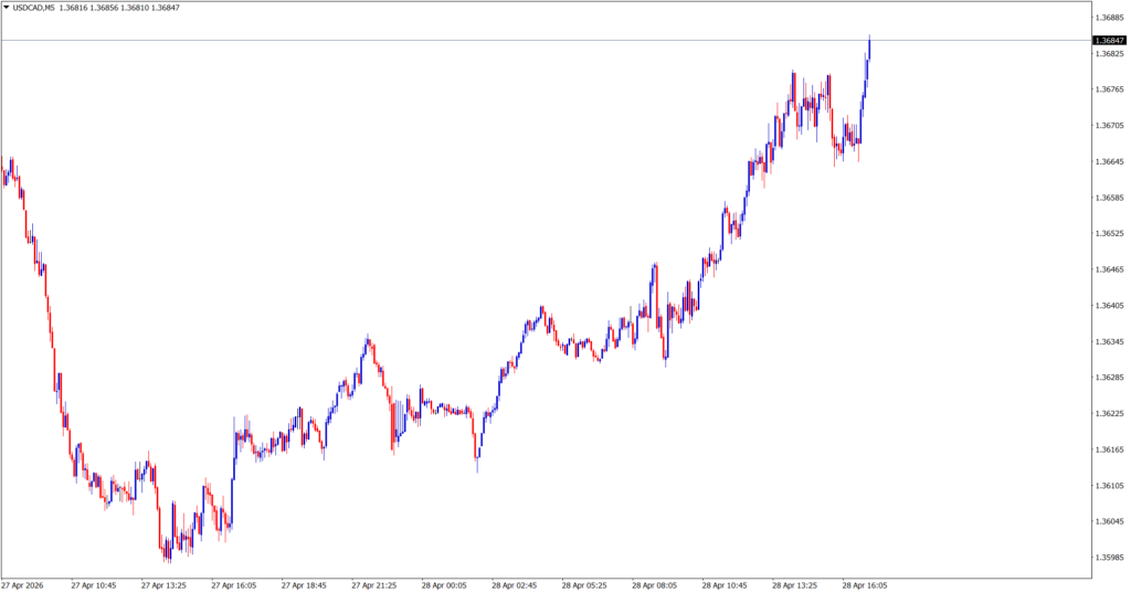 USD/CAD moved lower, continuing its range-bound behavior but with a slight bearish bias. The pair failed to hold earlier levels and drifted downward, reflecting a lack of sustained dollar strength.
