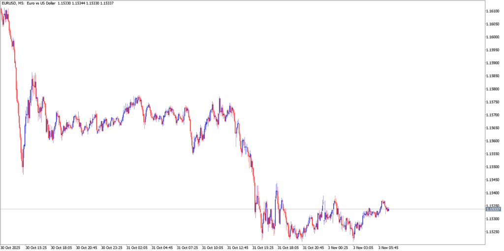 Eurozone data offered little relief. October’s eurozone manufacturing PMI held essentially steady at 50.0, up slightly from 49.8, but this did not strengthen the euro. FXStreet noted that the PMI “failed to provide any significant support” to EUR/USD. The ECB’s sentiments were also neutral: Bundesbank President Nagel said current data were in line with projections and that “all options remain open” for policy, a comment that suggested no imminent easing or tightening. In contrast, U.S. cues drove the dollar higher. Fed Chair Powell’s dovish-cut expectations were curbed – he explicitly played down the odds of a December cut – which fueled a broad USD rally. In this context EUR/USD slid to fresh multi-month lows, and markets turned to upcoming U.S. data (ISM manufacturing) and Fed speakers for any fresh impulses.