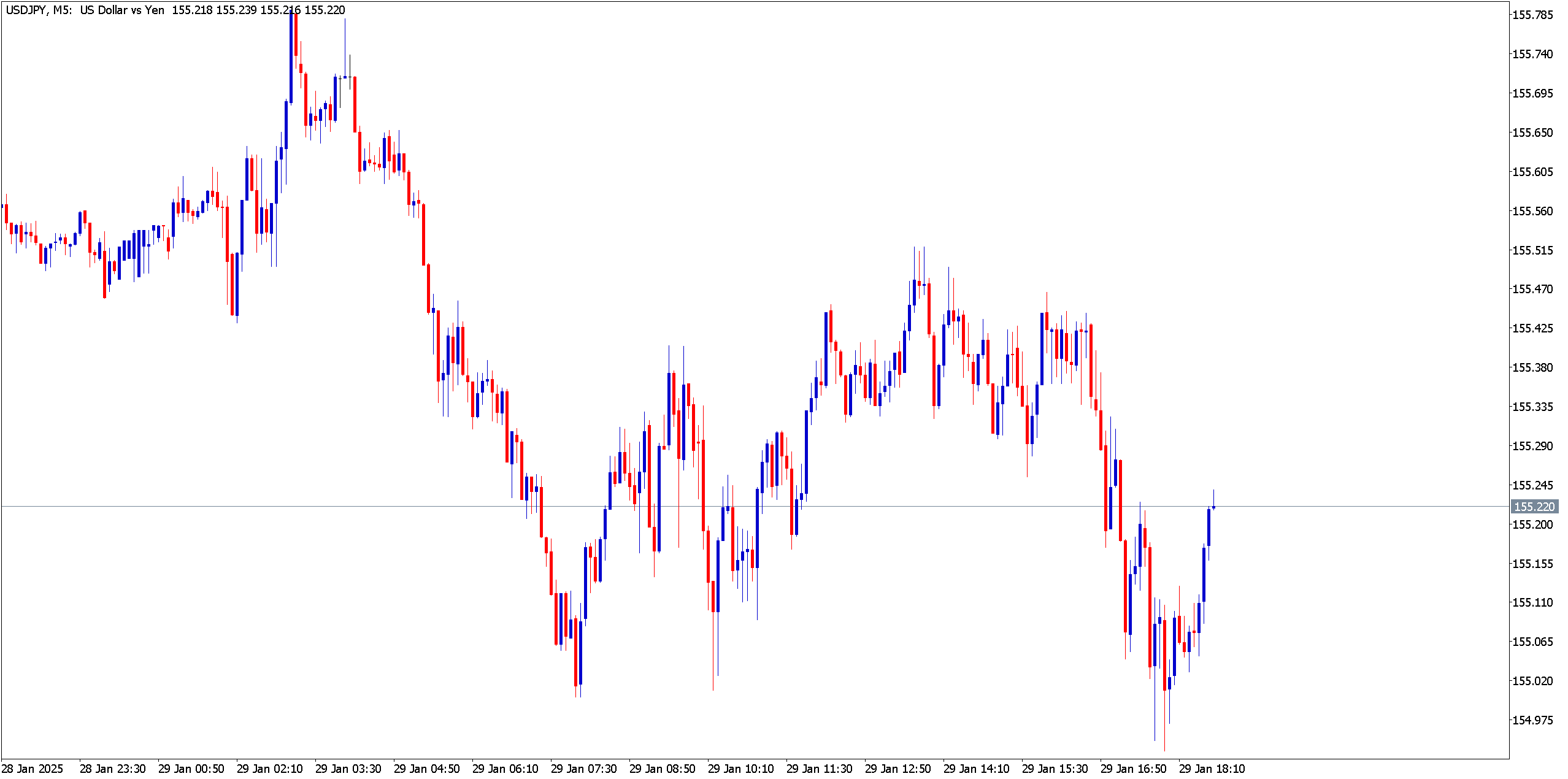 The USD/JPY pair showed choppy movement, currently trading around 155.20 after touching a session low near 154.97. The pair was influenced by Tokyo Core CPI (2.5% YoY) and post-Fed volatility in the dollar.