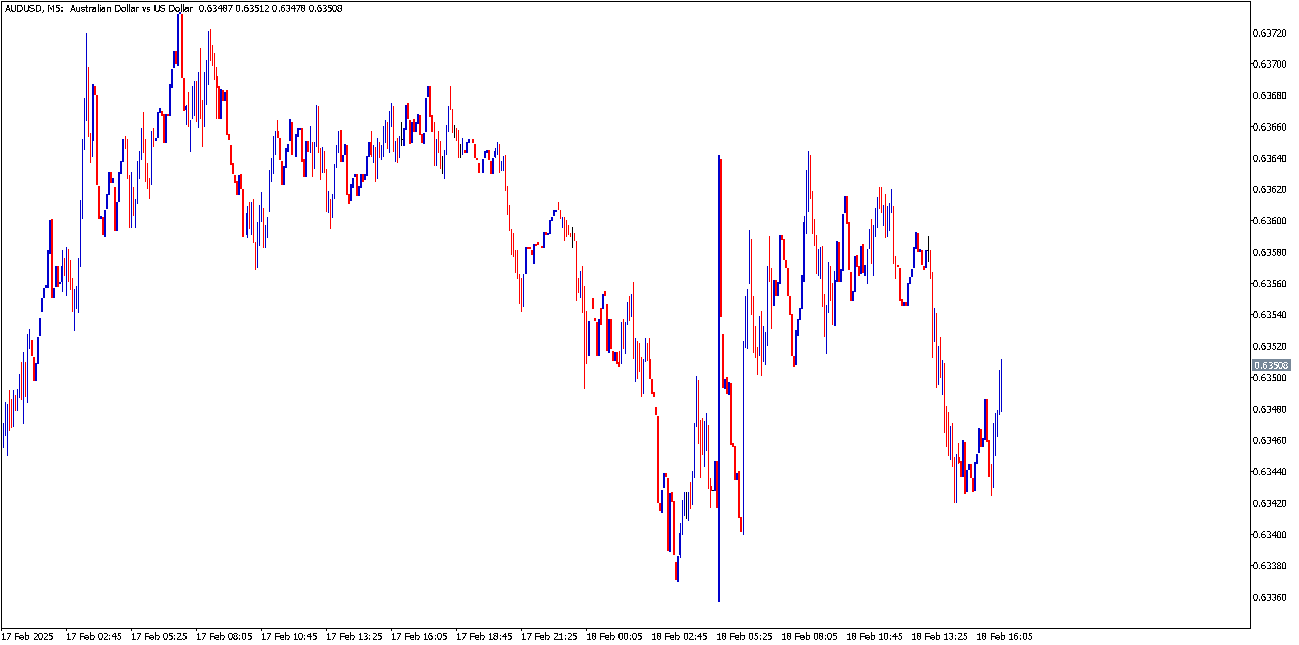 The AUD/USD pair exhibited high volatility, initially dropping to 0.6340 before rebounding towards 0.6360. The movement followed weaker-than-expected Australian employment data, which saw employment change decline by -23.7K. On the technical side, MACD is showing mixed signals, indicating market indecision, while the Stochastic Oscillator is in oversold territory, suggesting a potential rebound. The 14-day RSI remains neutral.
