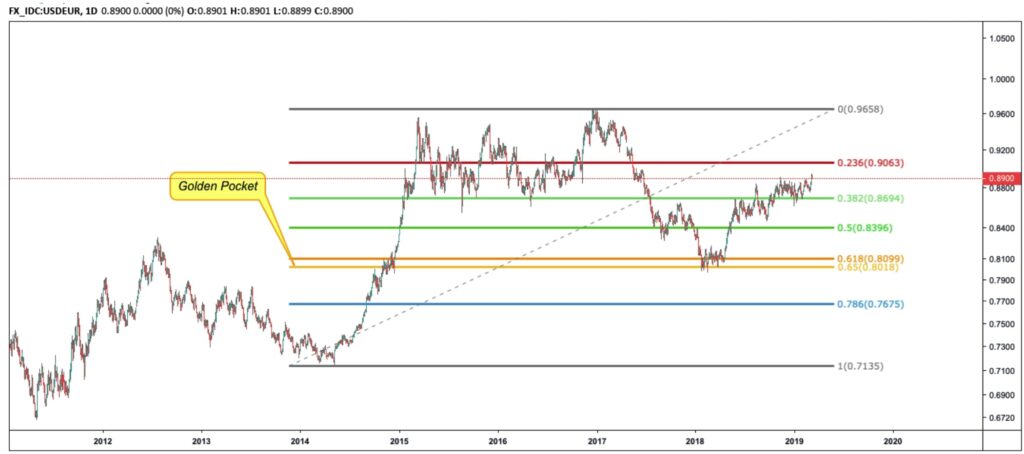 - If price reaches the Golden Pocket near resistance, traders look for sell signals.