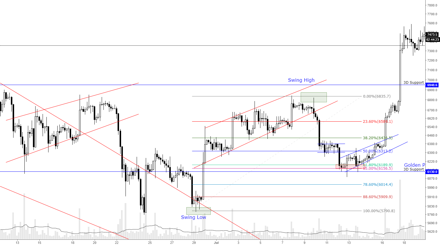 - If price moves past the Golden Pocket but quickly returns, it is a fakeout.