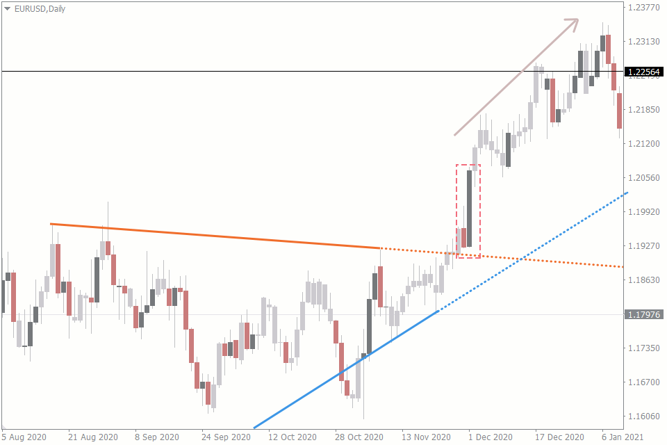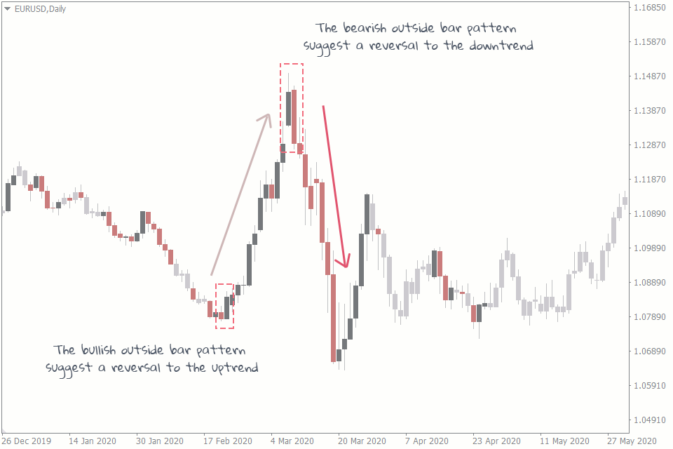 For example, if the EUR/USD pair forms an outside bar after a US Federal Reserve decision, it may indicate a big shift in trend.
