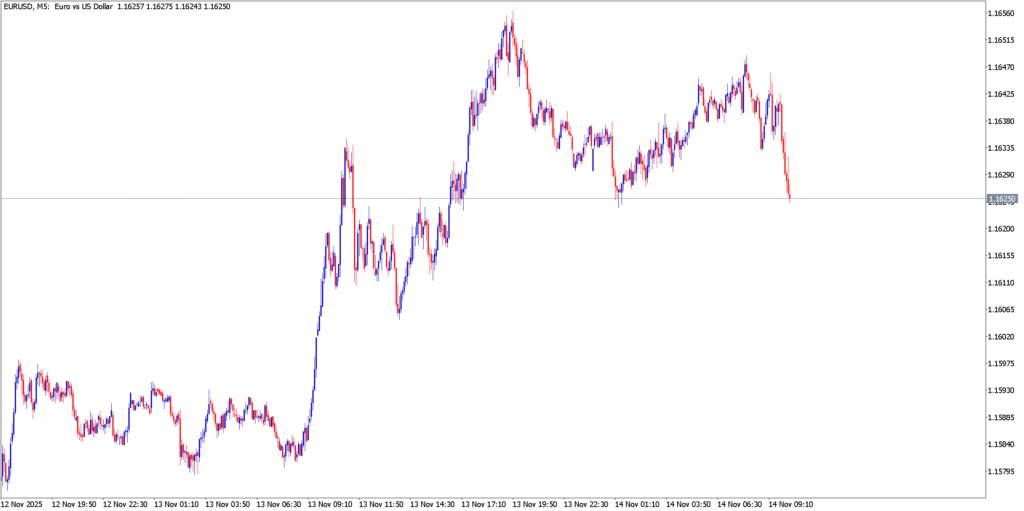 EUR/USD is roaring higher as well, with the pair’s bulls taking control after a period of consolidation. The 5-minute chart shows that euro-dollar was trading choppily in a range through much of Wednesday and early Thursday, bouncing between roughly the $1.1560 support area and the $1.1600 level. That changed dramatically late Thursday and into Friday, when strong upside momentum propelled EUR/USD through the $1.1600 barrier decisively. Once that psychological level gave way, a flurry of buy orders hit the market, and the pair surged up to $1.1630+, tagging its highest value in over a week. This upside breakout from the previous range is a bullish signal – it indicates that the sequence of lower highs has been broken. On the intraday chart, there was little resistance once $1.1600 was cleared, which is evident from the long blue candlesticks stacking up as stops were triggered and new buyers piled in. The euro’s climb appears to be a classic short-covering rally combined with fresh longs chasing the breakout. Should the rally extend, the next upside levels to watch might be around $1.1650 and $1.1700 (where the pair had peaked last month). In the event of a pullback, former resistance at $1.1600 now turns into support, followed by the $1.1570 zone. With the pair comfortably above its short-term moving averages (on higher timeframes) and intraday trendlines pointing up, the technical outlook for EUR/USD is bullish heading into the close of the week.
