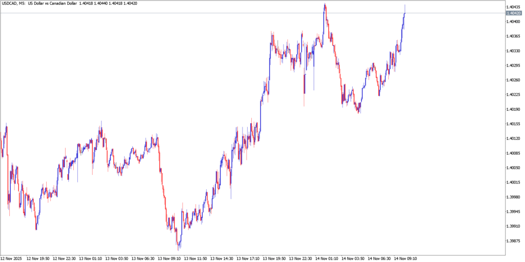 The US dollar’s slide is clearly visible in USD/CAD, where the pair has plunged below a key support level amid a surge in Canadian dollar strength. Earlier in the week, USD/CAD was range-bound, trading roughly between C$1.3980 and C$1.4050 in choppy fashion. In fact, the chart hints at a topping pattern: the pair attempted to push above C$1.4050 on Thursday but failed, marking a lower high after a peak on Wednesday. This gradual loss of upward momentum set the stage for a bearish turn. Once selling pressure picked up late Thursday, USD/CAD sliced through the crucial C$1.4000 handle, which had been providing support. This breakdown triggered an acceleration to the downside. On Friday, USD/CAD extended its fall to around C$1.3980 and below, hitting its lowest levels of the week. The swift drop confirms that bears are now in control in the short term. Technically, the path of least resistance appears downward: with lower highs and lower lows forming on the intraday chart, the pair is in a near-term downtrend. The breach of 1.4000 means that level now becomes initial resistance on any bounce, followed by the area around 1.4050. On the downside, traders are eyeing support at roughly C$1.3950 and the mid-1.39s – levels unseen since late October – as potential targets if the sell-off continues. The 5-minute candlesticks show strong red bodies indicative of heavy selling momentum, so caution is warranted if attempting to call a bottom. Until we see signs of basing or a reversal pattern, the technical bias for USD/CAD remains bearish.