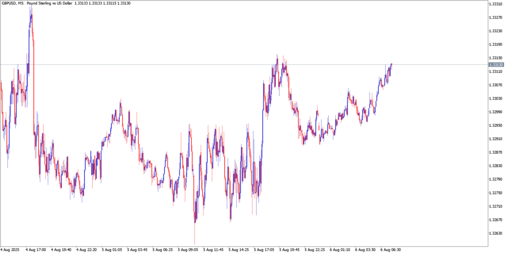 GBP/USD’s 5-minute chart shows the pair attempting to claw back losses, bouncing off support near $1.3260 and revisiting the $1.3300 handle. After a steep slide in July, sterling found an intermediate low around $1.3140 last week, and the recent bounce has brought it back into a tight range ahead of the Bank of England decision. Price is forming small-bodied candles (even a doji on the daily chart) as bulls lack conviction at $1.33 – a psychological level aligning with the 50-period moving average on the 4H chart. Immediate **resistance stands at $1.3325–1.3340, just above current pricing, and a break higher could open the door to the key $1.3400 pivot area. On the downside, support from the recent rebound lies at $1.3260 (the week’s floor) with stronger support around $1.3180–1.3140 (last week’s lows). The short-term trend has turned into a base-building phase – a relief from the prior downtrend – but the pound’s upside appears capped unless a fresh catalyst emerges.