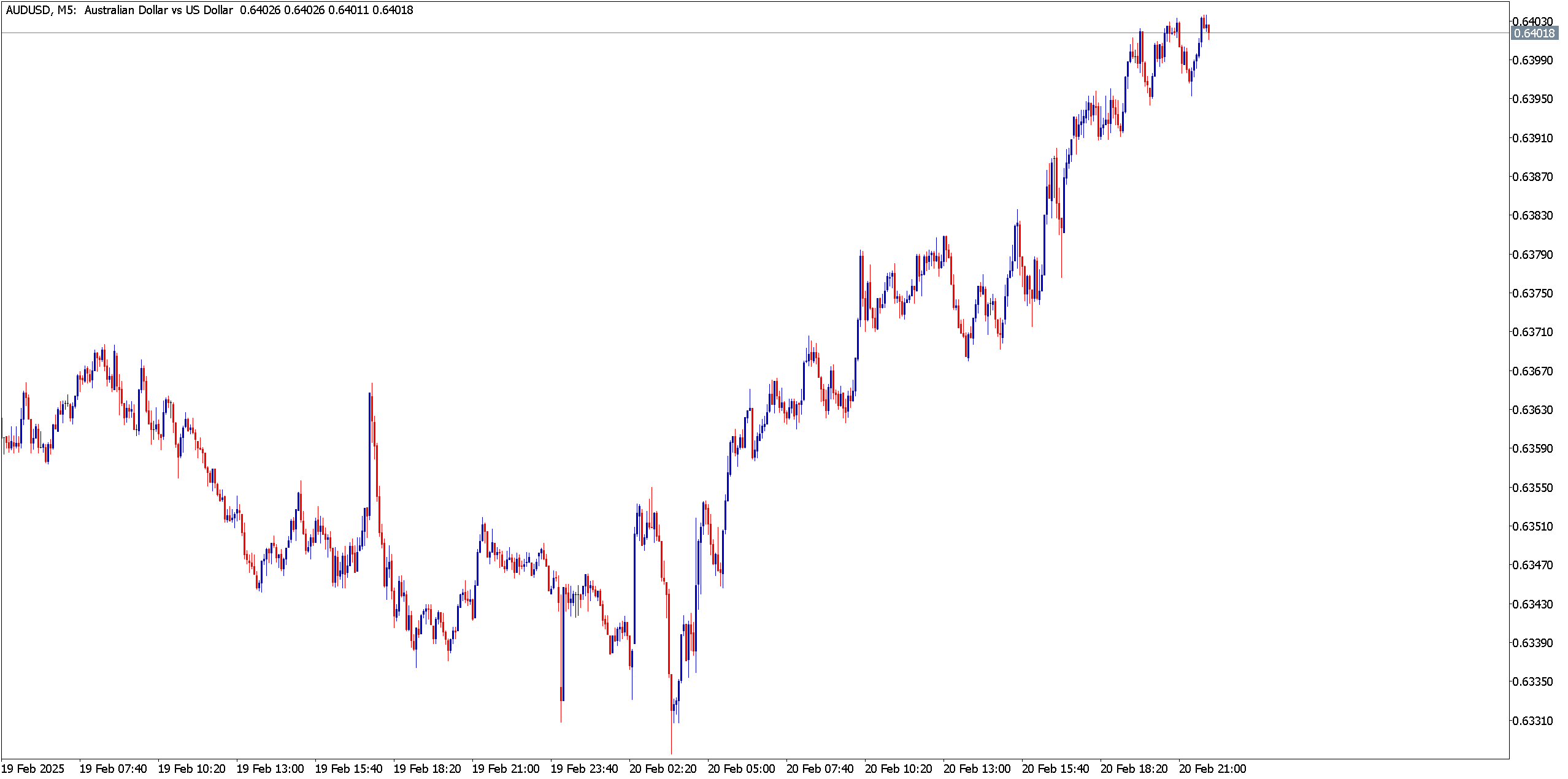 The AUD/USD pair surged to a session high of 0.6403, reflecting strong bullish momentum. The rally was fueled by a broad sell-off in the U.S. dollar and improving risk sentiment.